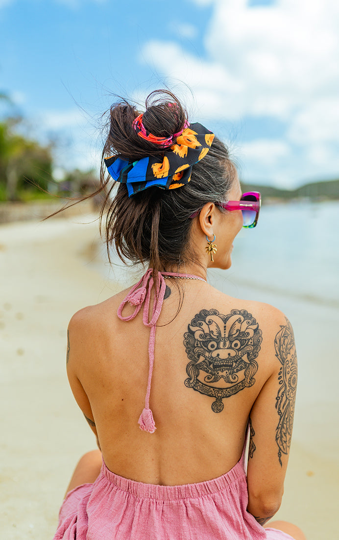 Colorido, firme y con un tamaño perfecto para lucirlo en el pelo o en la muñeca.