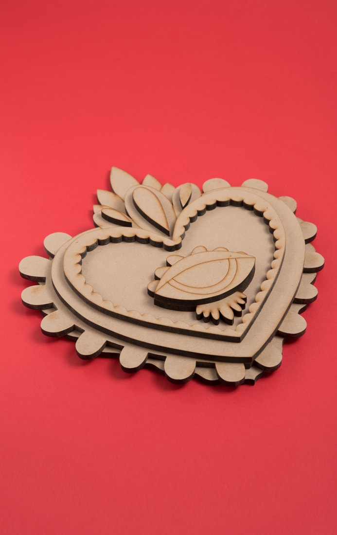 Corazón de madera para armar y colorear. Esta pieza esta compuesta por 9 figuras de madera (aglomerado). La imagen del corazón ya armado y pintado es una referencia para que veas cómo podría quedar. Puedes pintar con pintura acrílica, chalk paint, metalic paint o cualquier pintura a base de agua.