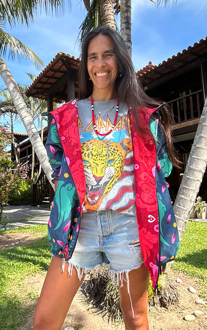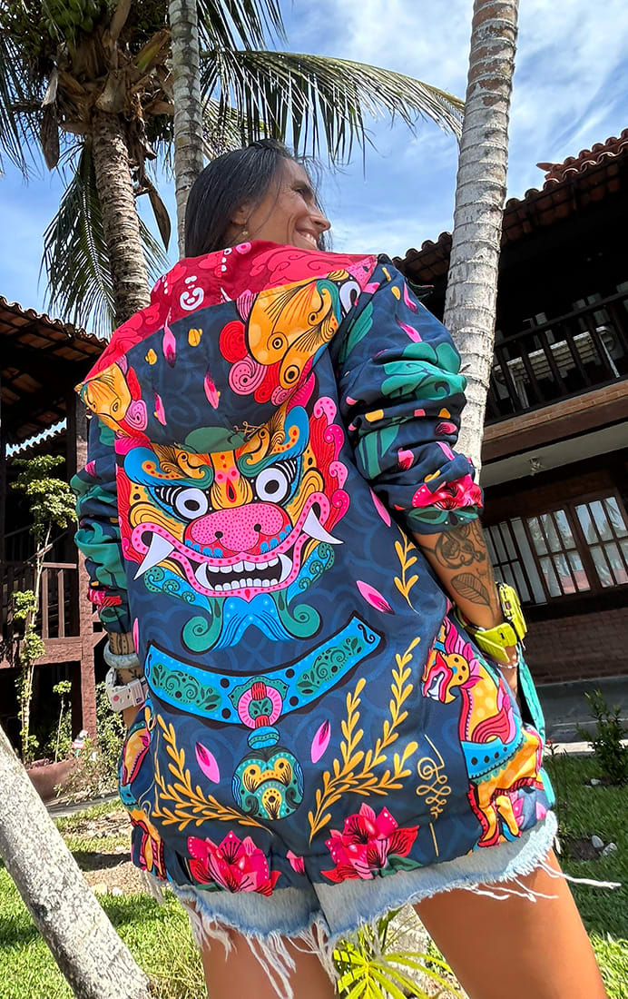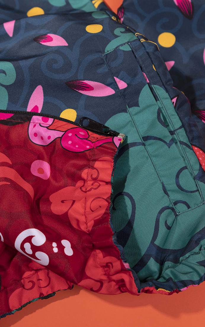 Un abrigo, dos estilos y arte en cada detalle. Este cortavientos reversible es mucho más que una prenda: es una declaración de creatividad, color y diseño.