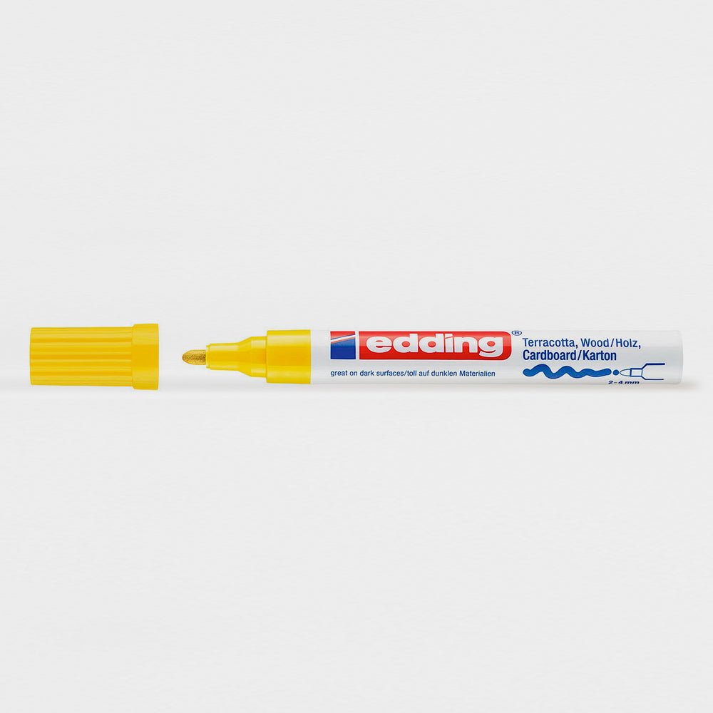 Marcador decorativo en base a Agua, de tinta opaca mate, de gran cobertura sobre superficies rugosas, oscuras o porosas, ideal para cualquier materialidad.