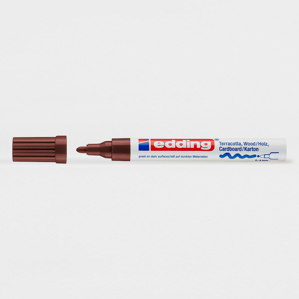 Marcador decorativo en base a Agua, de tinta opaca mate, de gran cobertura sobre superficies rugosas, oscuras o porosas, ideal para cualquier materialidad.