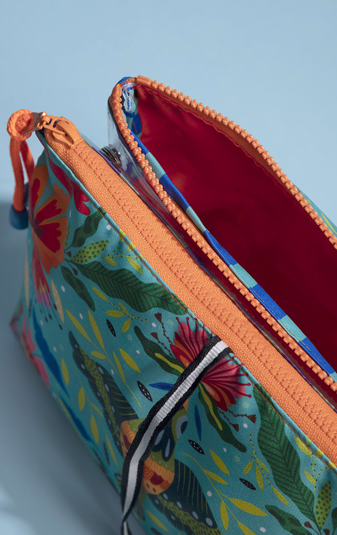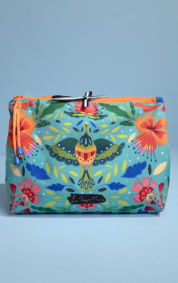 Con un tamaño práctico y espacioso, este estuche está pensado para adaptarse a tu ritmo de vida. Pero lo que realmente lo hace único es su increíble diseño: está completamente ilustrado por la artista chilena La Negra María, cuya estética colorida y detallada transforma cada pieza en una obra de arte funcional.