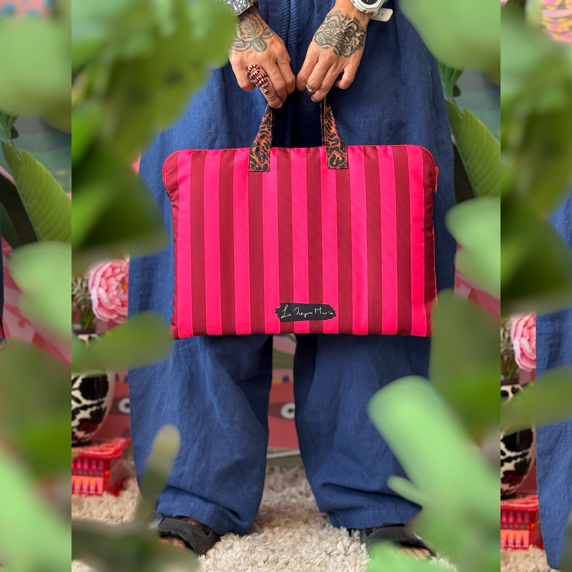 Confeccionado en lona impermeable, es un estuche acolchado, resistente y suave al tacto, pensado para proteger tu notebook sin perder ese toque artístico tan característico de La Negra María.