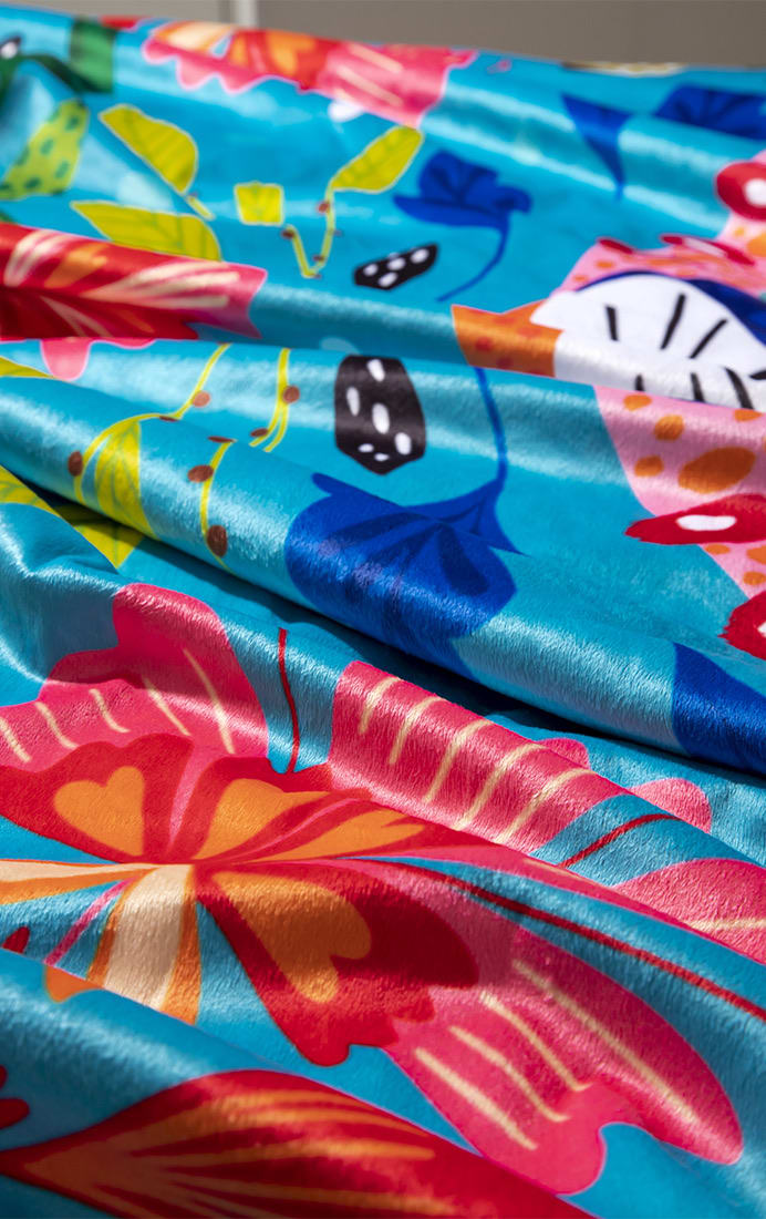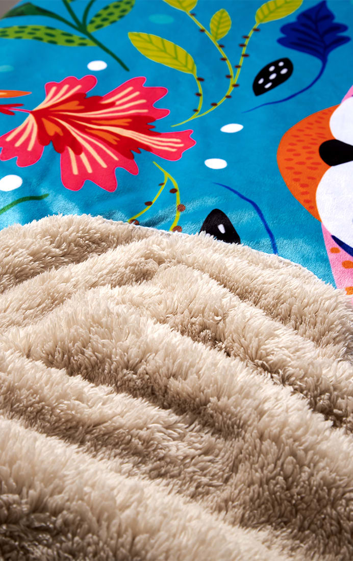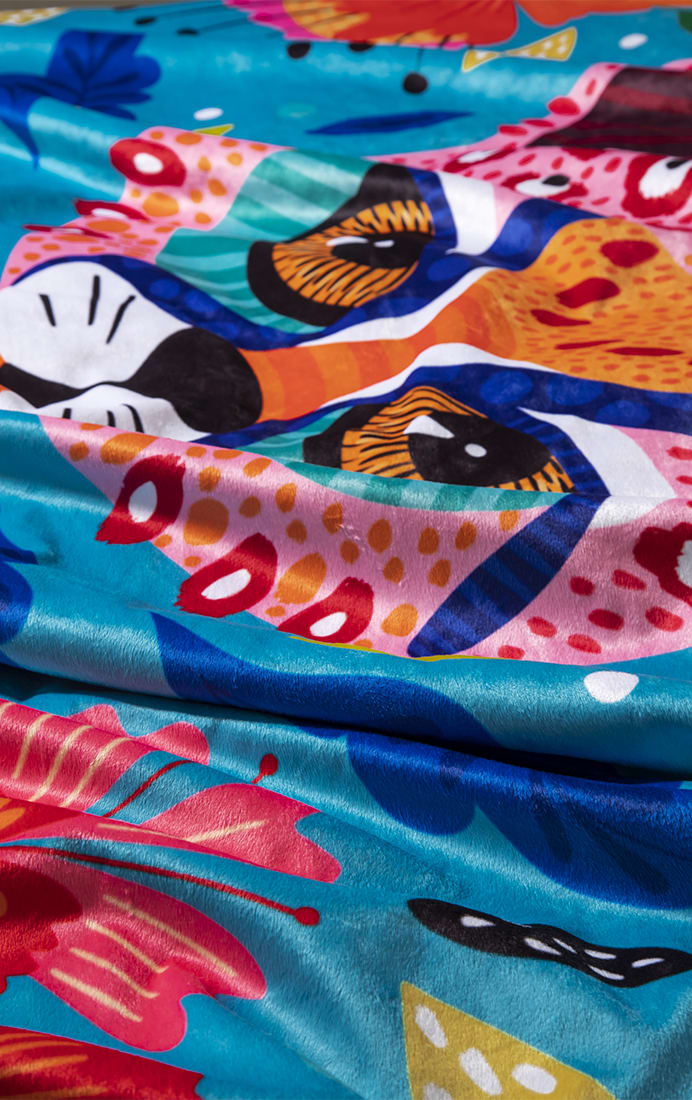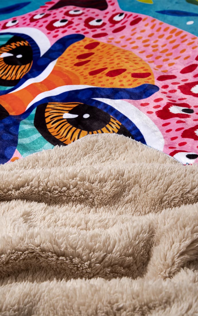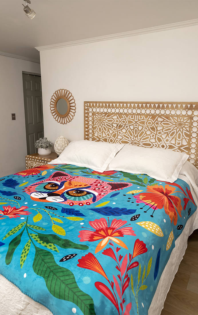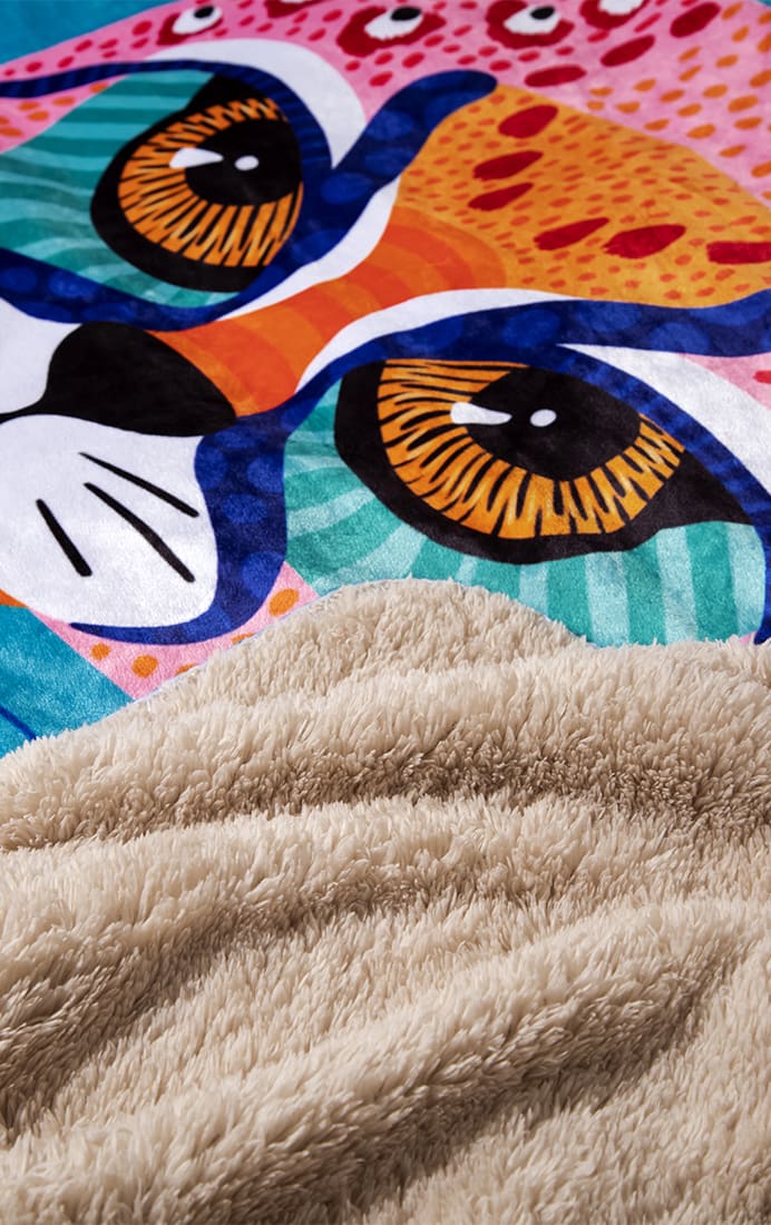 Esta exquisita manta Sherpa ilustrada combina una sensación de felpa con una suavidad excepcional, lo que la convierte en la compañera de máxima comodidad. Perfecta para el uso diario mientras descansa en el sofá, para acurrucarse en las tardes frescas o para darle un toque de color y diseño a cualquier rincón de tu casa: esta mantita ofrece comodidad y calidez inigualables.