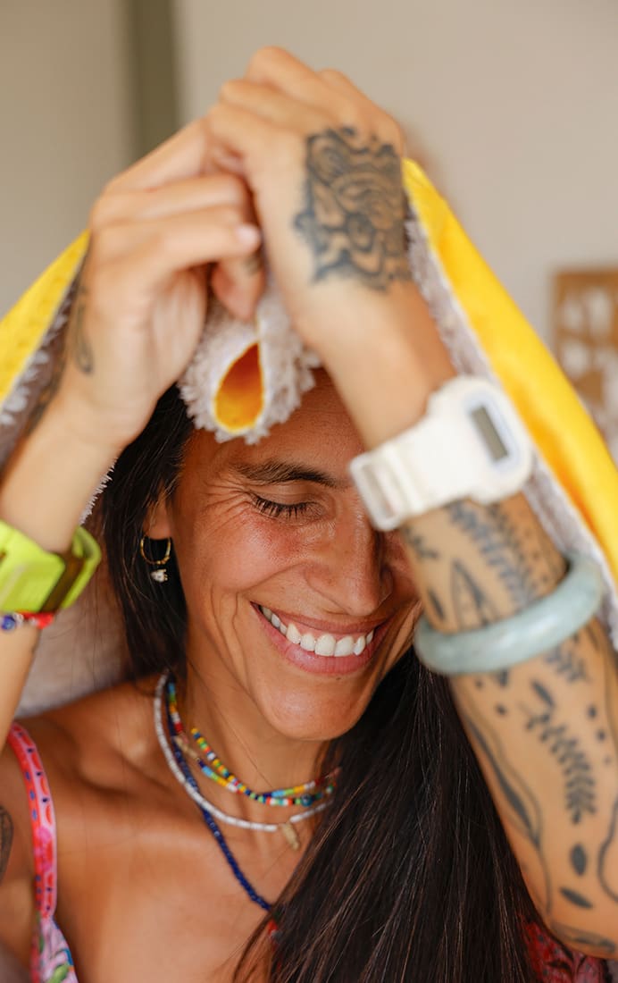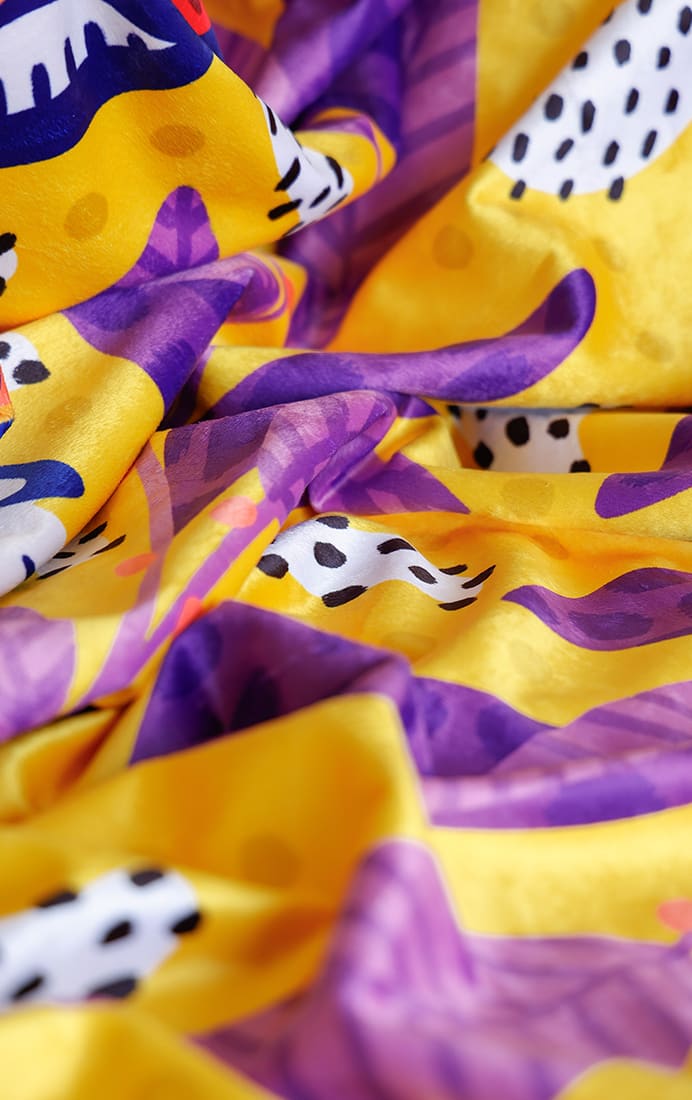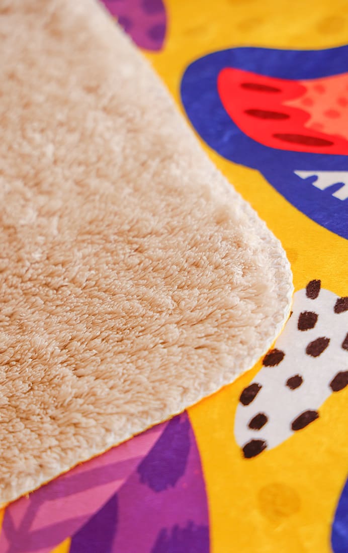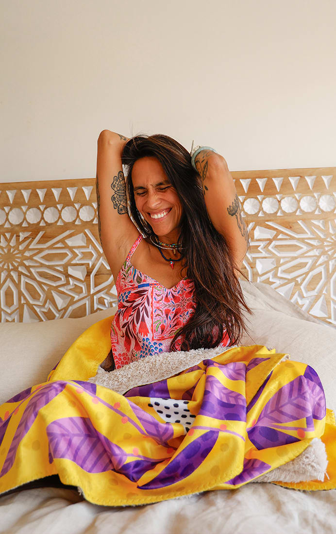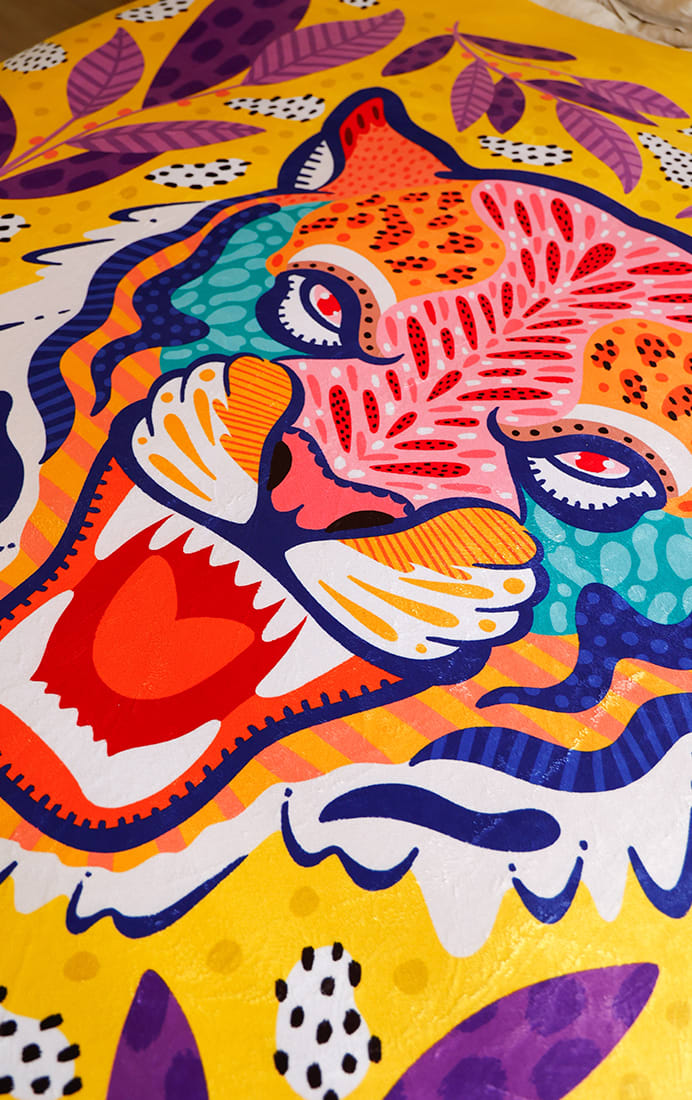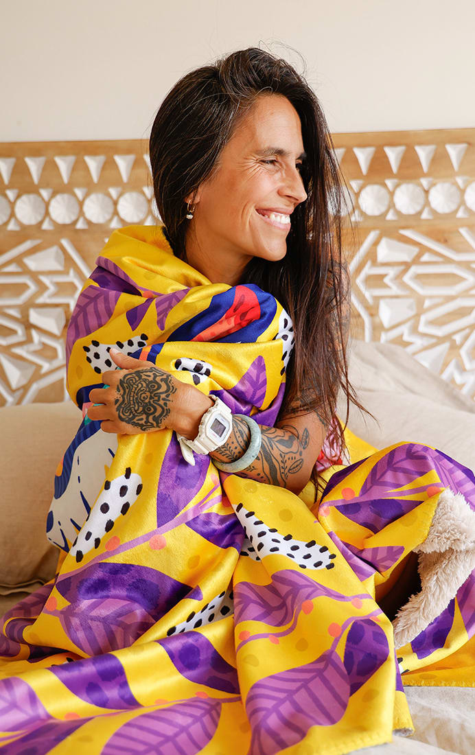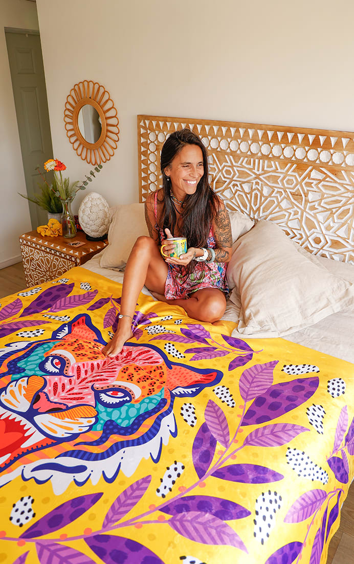 Está disponible en dos tamaños M (153 x 126 cm) y L (153 x 203 cm) y en dos diseños únicos ilustrados por La Negra María.