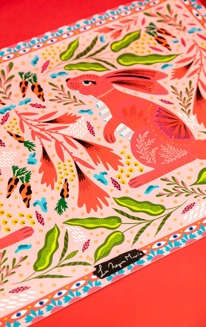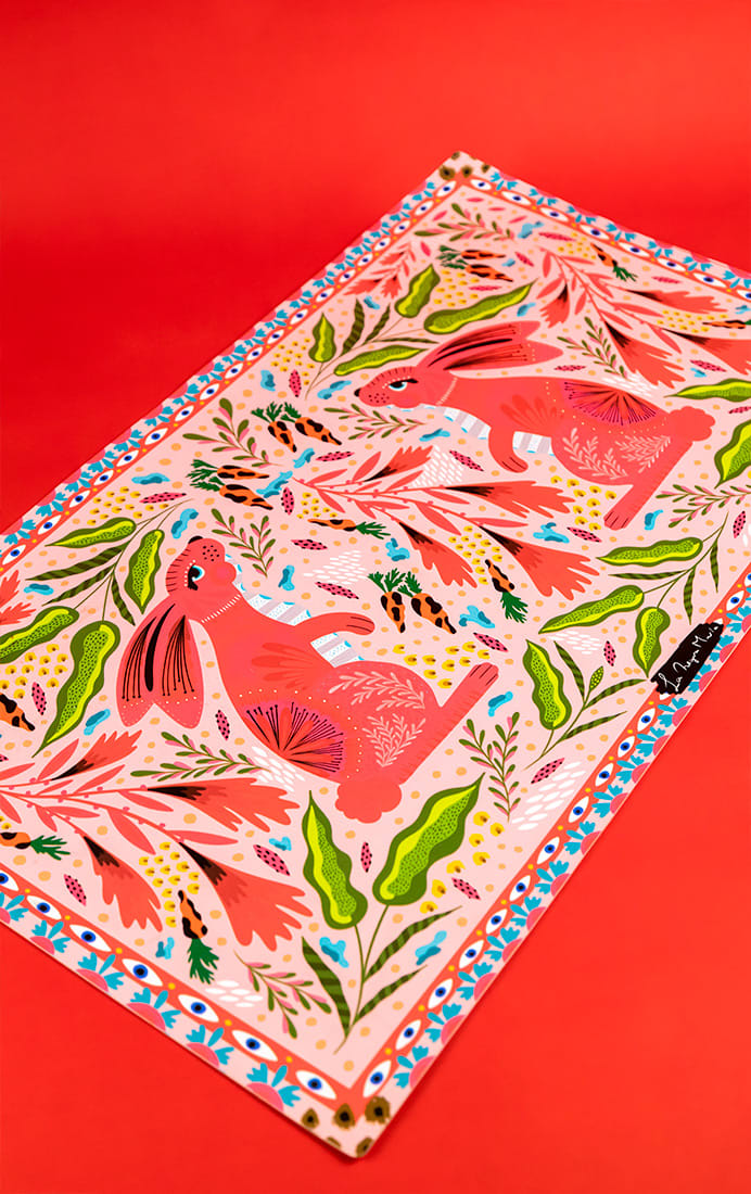 Completamente ilustrado por La Negra María, tiene el tamaño perfecto para acompañarte en tus jornadas creativas: 68 x 40 cm de superficie colorida para apoyar tu computador, estuche, mouse o todo lo que necesites tener a mano.