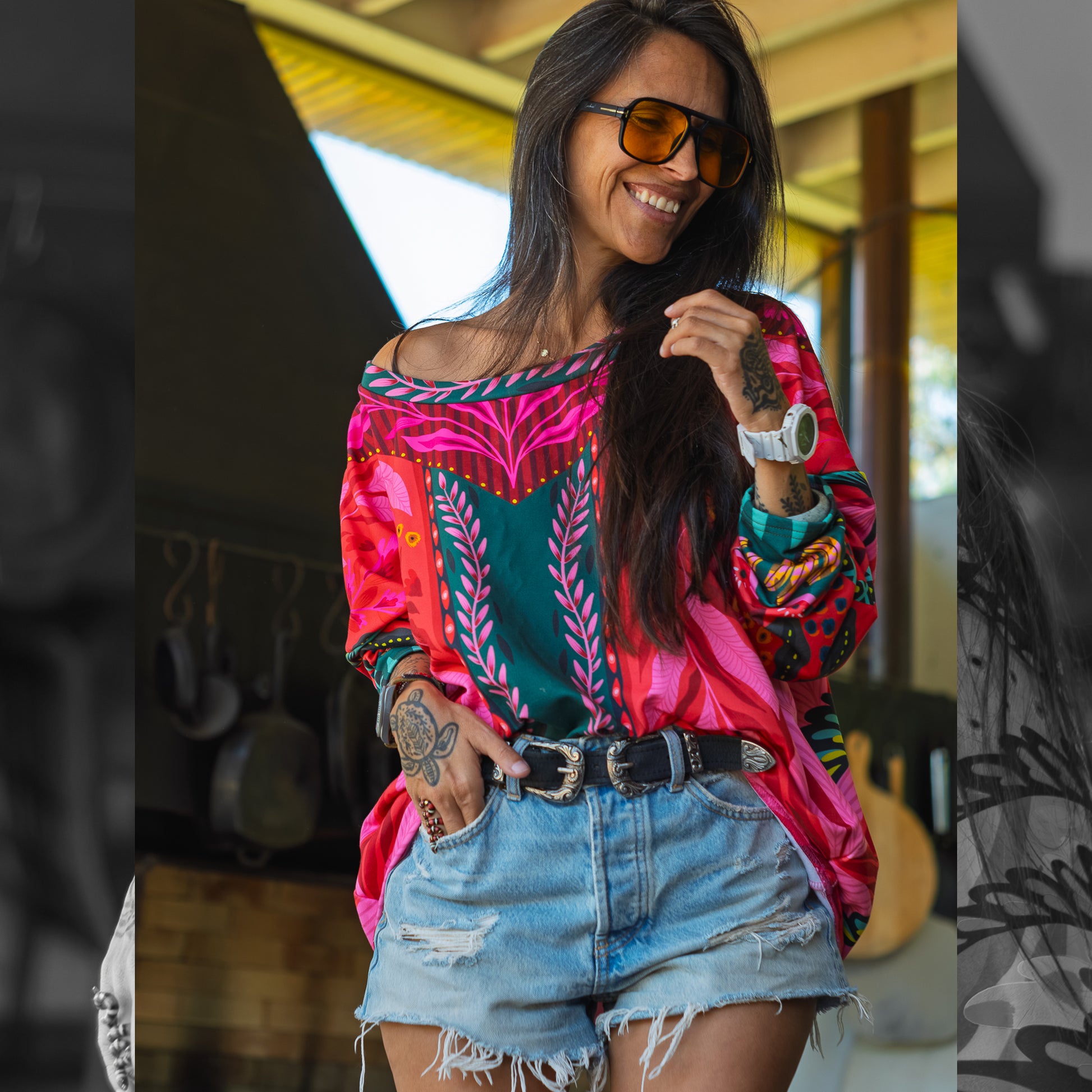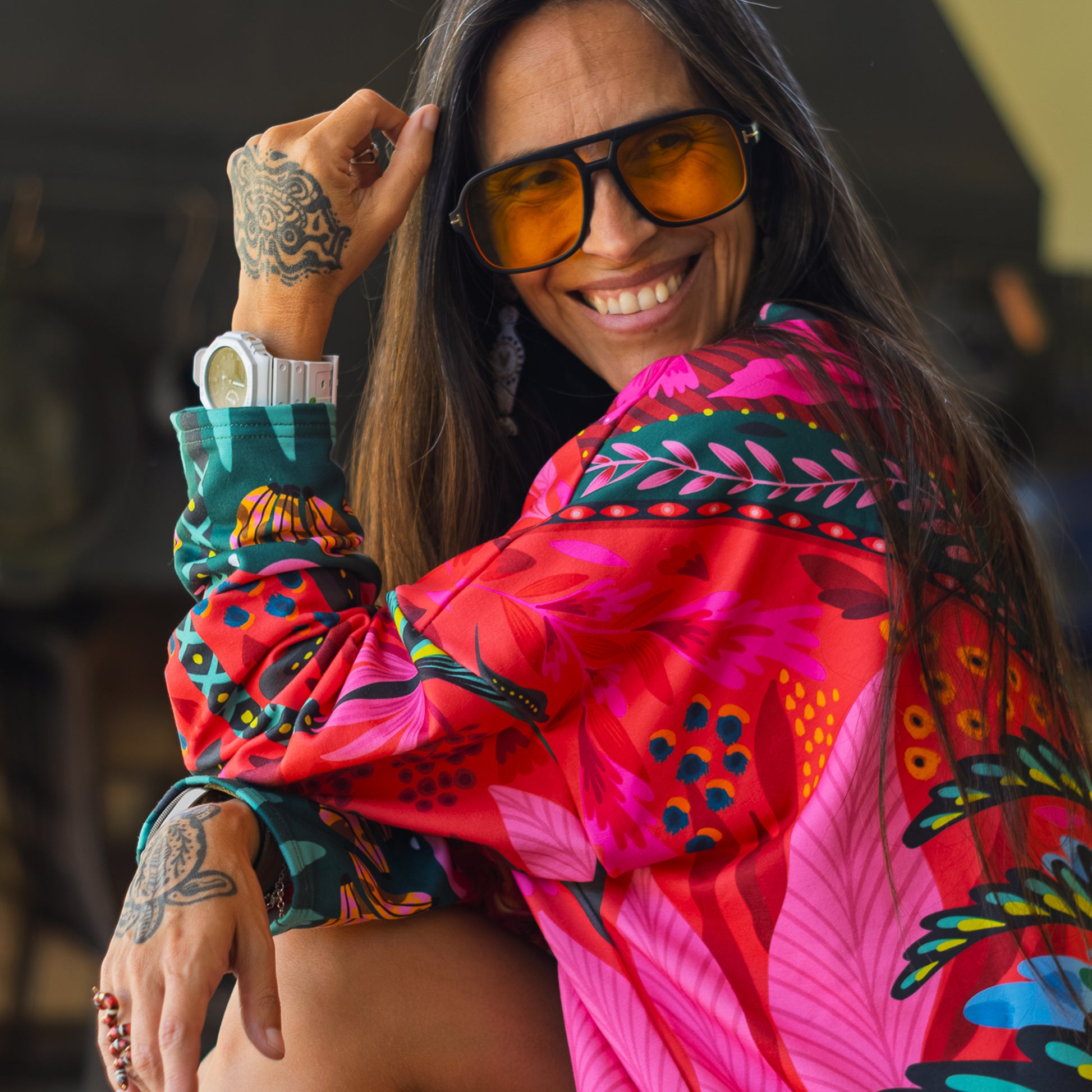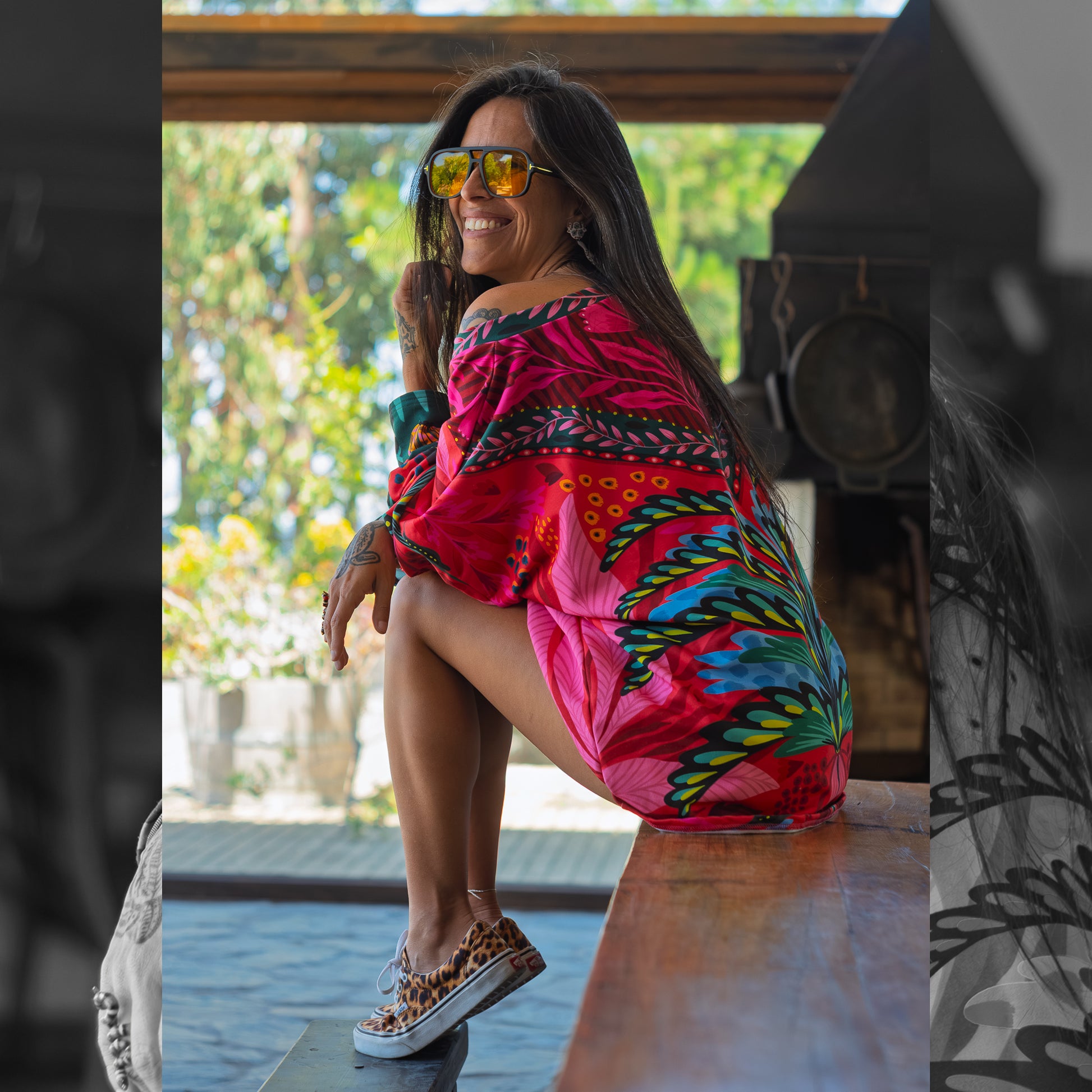 Está completamente ilustrado, lleno de vida y personalidad, como una verdadera obra de arte para vestir. Su tela suave y liviana lo hace ideal para la media estación o esas tardes veraniegas en que el sol se esconde y el aire refresca.