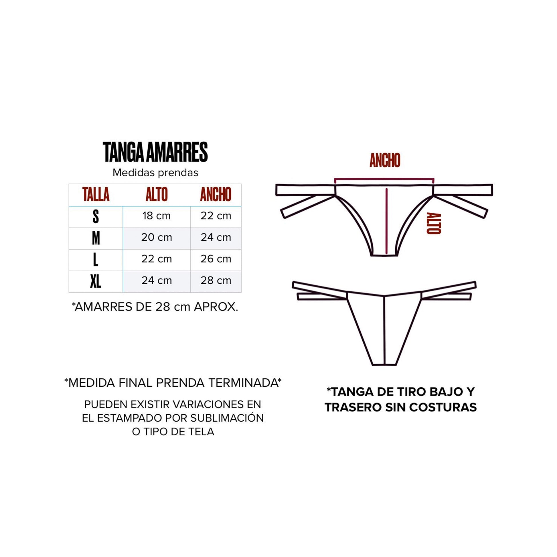 Es una tanga con amarras a los costados, un modelo clásico, versátil y ultra femenino, perfecto para ajustarse a todo tipo de cuerpos y lograr el calce exacto que a ti te acomode.