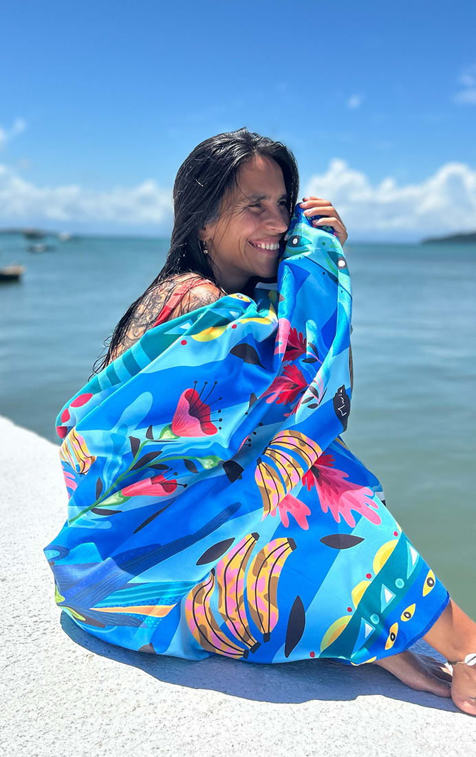 Maxi toalla de 100 x 200 cm. Confeccionada con tela Travel Mare Eco, una tela de toalla repelente a la arena de 200 gramos de espesor. Es la tela perfecta para toallas de playa y gimnasio!