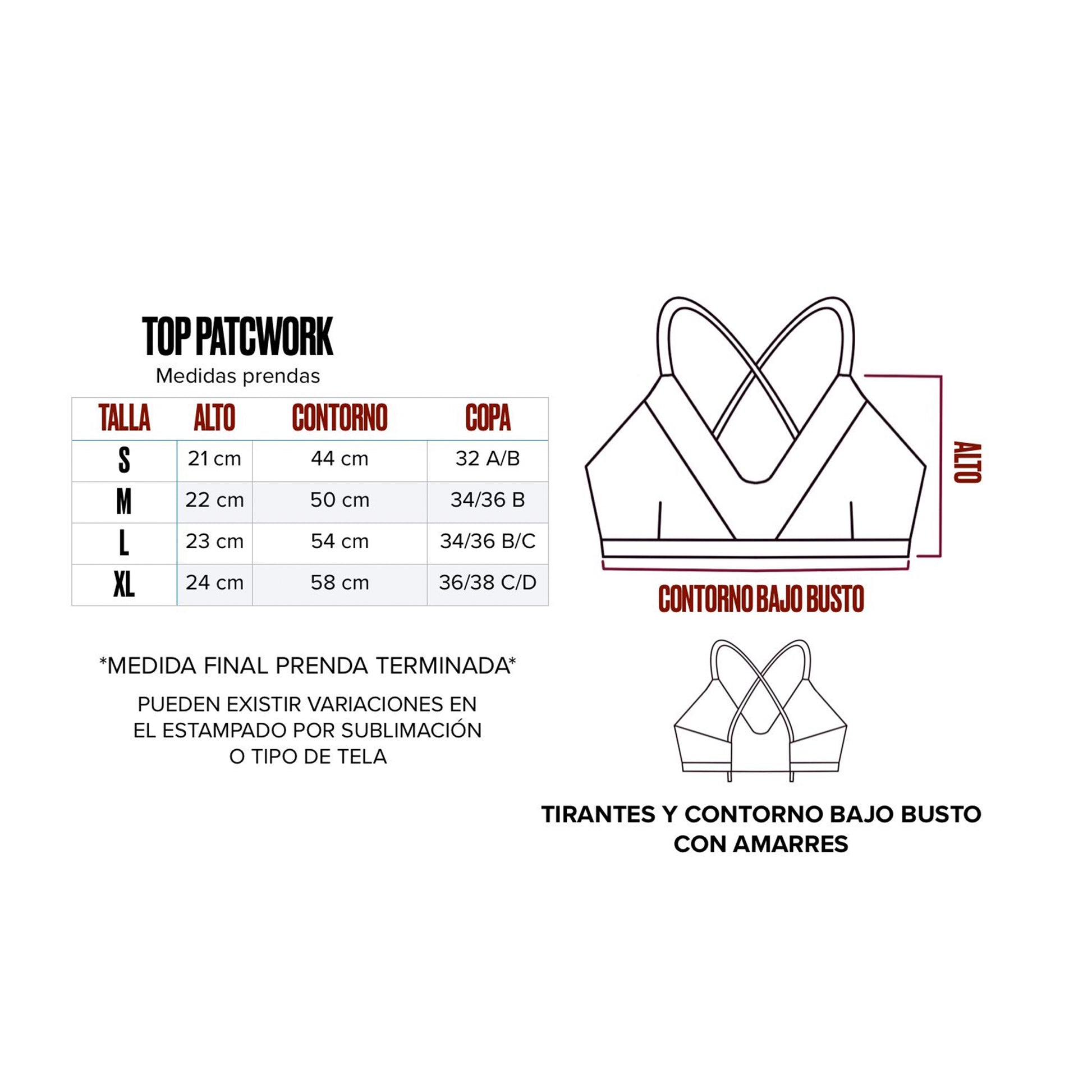 Se trata de un top tipo patchwork, donde distintas ilustraciones se encuentran para formar un todo vibrante, alegre y lleno de detalles.