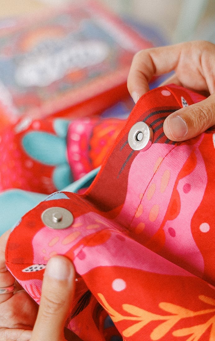 Está hecha de tela resistente y con un diseño exclusivo que refleja toda la pasión y color de mi arte, es perfecta para llevar lo que quieras: desde tus libros favoritos, lápices, mantitas y hasta las compras del día. Su amplio espacio te permitirá tener todo a mano, con algo de mi acompañándote en cada paso.